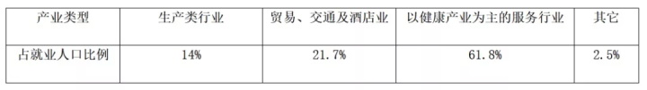 其典型代表是德國(guó)西南部黑森林地區(qū)的療養(yǎng)勝地巴德克羅欽根,全市占地面積35.66平方公里,其中綠地約18公頃,生境地2.6公頃,總?cè)丝跀?shù)為20292人,相當(dāng)于我國(guó)一個(gè)特色小鎮(zhèn)的規(guī)模。就業(yè)人口類(lèi)型比可以看出,它是典型的以健康產(chǎn)業(yè)為主導(dǎo)產(chǎn)業(yè)、零售業(yè)為輔助的溫泉健康產(chǎn)業(yè)小鎮(zhèn)。(詳見(jiàn)表1)