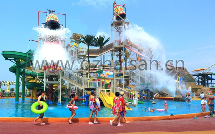 亞特蘭蒂斯海樂園坐落于美麗的濱海之城——蓋州市北海,由營口北海圣和龍翔置業(yè)發(fā)展有限公司投資新建,占地面積210畝,計劃總投資6億人民幣,海山游樂為該項目提供了規(guī)劃設計及水上樂園設備制造、安裝等服務。主要水上樂園設備有:大喇叭滑道、暴風谷滑道、巨蟒滑道、滑毯波浪滑道、螺旋滑道、海浪池、水寨及戲水小品等。