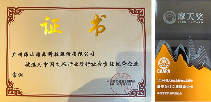 廣州海山被評(píng)選為中國文旅行業(yè)履行社會(huì)責(zé)任優(yōu)秀企業(yè)案例和最受關(guān)注文旅裝備企業(yè)