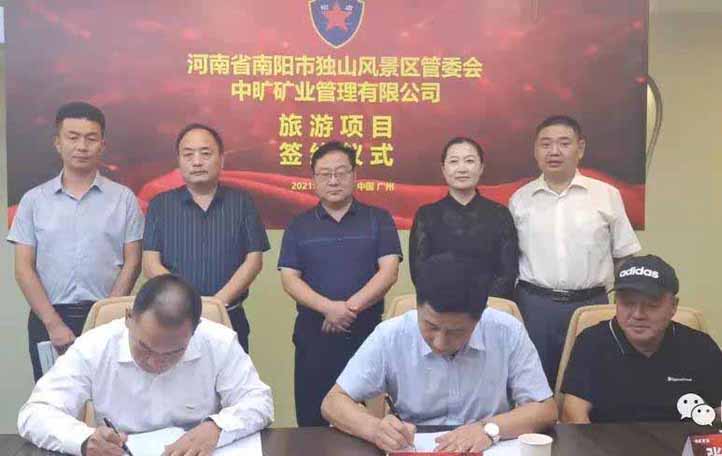 9月24日下午,臥龍區(qū)獨山風景區(qū)管委會在廣州市與中曠礦業(yè)管理有限公司簽訂了獨山區(qū)域旅游開發(fā)框架協(xié)議。將就獨山風景區(qū)景觀打造、基礎(chǔ)設(shè)施提升及利用山體東側(cè)白河零號橡膠壩水面建造水上樂園展開深度合作。根據(jù)協(xié)議約定,“中曠礦業(yè)”在獨山文旅項目上將攜手“海森文旅科技集團”“華強方特文化科技集團股份有限公司”等四家企業(yè)共同投建。